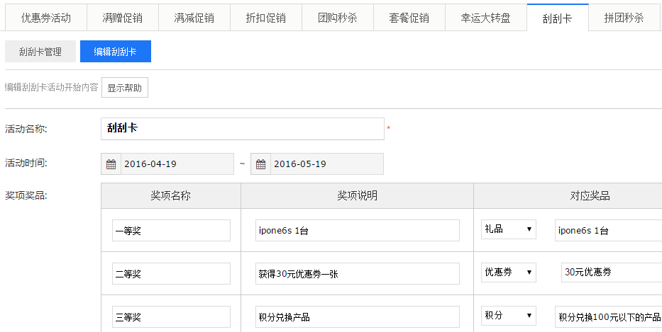 粉丝通过手机屏幕进行刮奖,生动形象,商家只需设置活动时间、活动规则、活动奖品等基本信息即能发起活动,粉丝中奖后直接联系商家获得奖品。