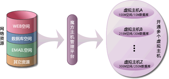 魔方主机是黑马网络在虚拟主机技术基础上,最近推出的一个主机新产品。简单的来说,魔方主机是一个虚拟主机合集产品,它只用一次购买网络资源(如WEB空间容量、IIS链数、数据库空间容量等),即可开通多个虚拟主机,并可随时自由分配每个虚拟主机的可用资源。